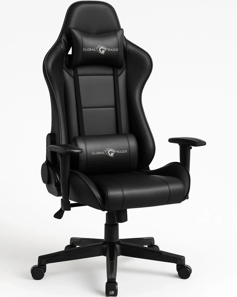 The Global Razer Gaming Chair is designed to keep you comfortable through streaming, or work session. With its adjustable headrest, back, height, 3D armrests, and lumbar support, it adapts perfectly to your posture and preferences. The Global Razer Gaming chair offers a 90° to 180° recline so you can switch from focus mode to full relaxation with ease, while the 360° rotation gives you complete freedom of movement. Built for long hours and peak performance, Global Razer isn’t just a chair, it’s your ultimate gaming and workspace companion.